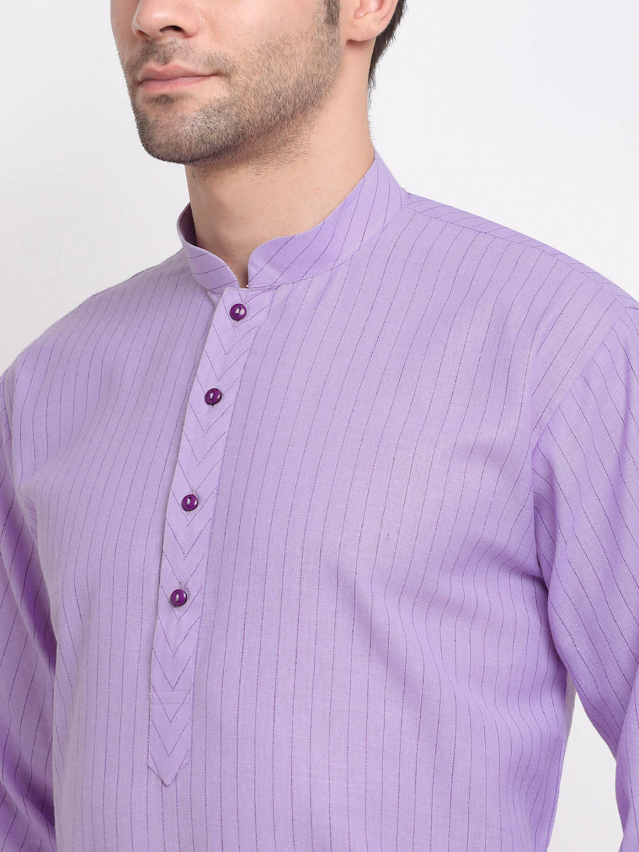 Men Cotton Striped Lavender Kurta with Pyjamas (Set of 2) |LUXURY EMPORIUM | KURTA MEN |