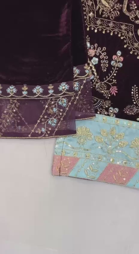 WINTER DESIGNER STYLE VELVET SEQUENCE EMBROIDERY WORK SUIT WITH DUPATTA ~ | Luxury Emporium